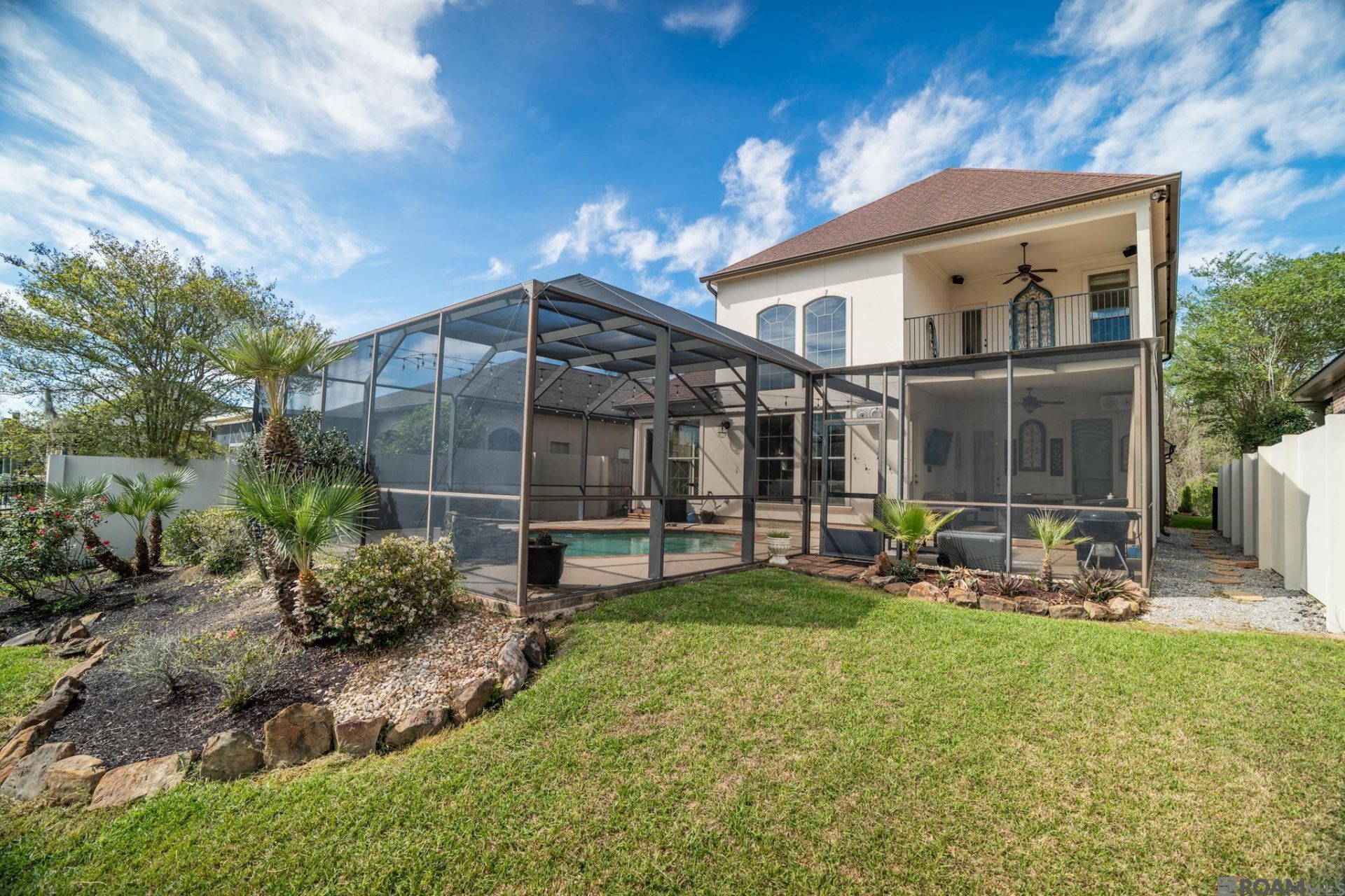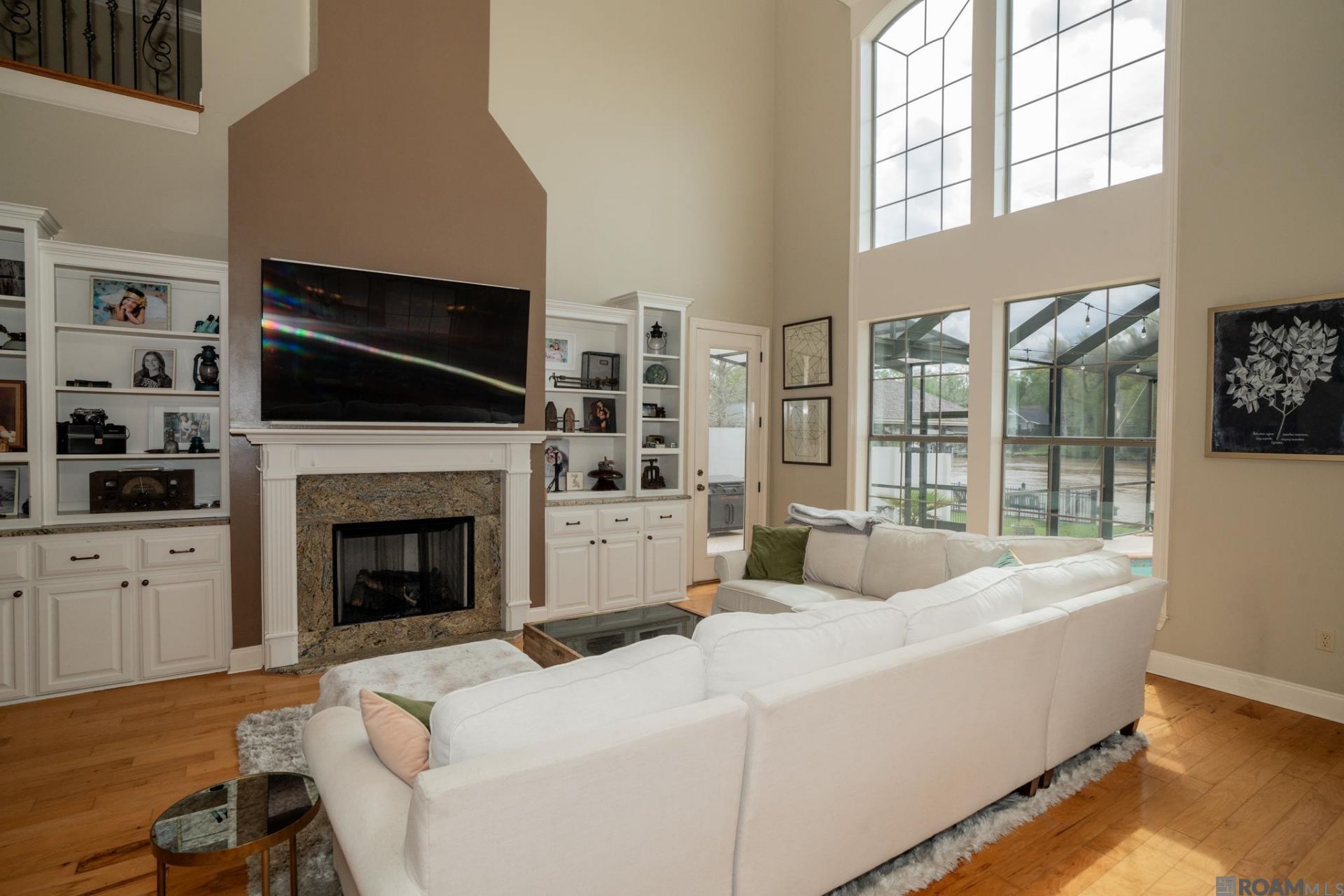 This meticulously designed 4-bedroom home offers over 2,800 sq/ft of living space, complete with a private office, an upstairs loft with a river-facing balcony, and an exceptional outdoor setup featuring an inground screened pool, bulkhead, and covered boat slip with lift. The living room showcases soaring 20-foot ceilings, large gas fireplace and a wall of windows that flood the space with natural light while framing picturesque views of the backyard & river. Thoughtful details include a built-in entertainment center, maple wood floors, 8' real wood doors and trim, triple crown molding, and an open-concept layout that seamlessly connects to the kitchen. The kitchen is designed for both function and style, featuring a spacious 12'9 sitting bar, custom 3cm stone countertops with matching backsplash, stainless steel appliances, microwave hood vent, travertine tile flooring, pantry, and elegant opaque glass cabinet doors. It also offers convenient pass-through access to the laundry room. The primary bedroom has river views with a bathroom with double vanities, a large walk-in shower with dual shower heads, travertine flooring, and a jetted soaking tub, and tall ceilings. Upstairs, the loft overlooks the main living area and leads to two additional bedrooms with oak wood floors, connected by a Jack-and-Jill bathroom. Additional features include a private courtyard, fresh exterior paint and landscaping, surround sound ceiling speakers throughout, a spacious dining area, insulated double garage doors, a storage room, three-car-wide driveway, and gutters. Located in the desirable Waterfront East Gated community, this property offers direct access to the Blind and Amite Rivers, Lake Maurepas, Lake Pontchartrain, and even the Gulf...truly a sportsman's paradise and a lifestyle of its own. Conveniently situated near dining, live entertainment, gyms, urgent care, dental, and pharmacy services, with just a 35-minute drive to Baton Rouge and 45 minutes to the New Orleans airport.